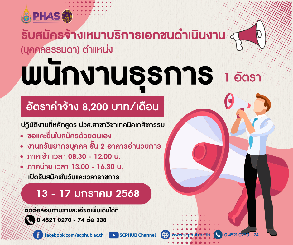 รับสมัครจ้างเหมาบริการเอกชนดำเนินงาน (บุคคลธรรมดา) ตำแหน่งพนักงานธุรการ