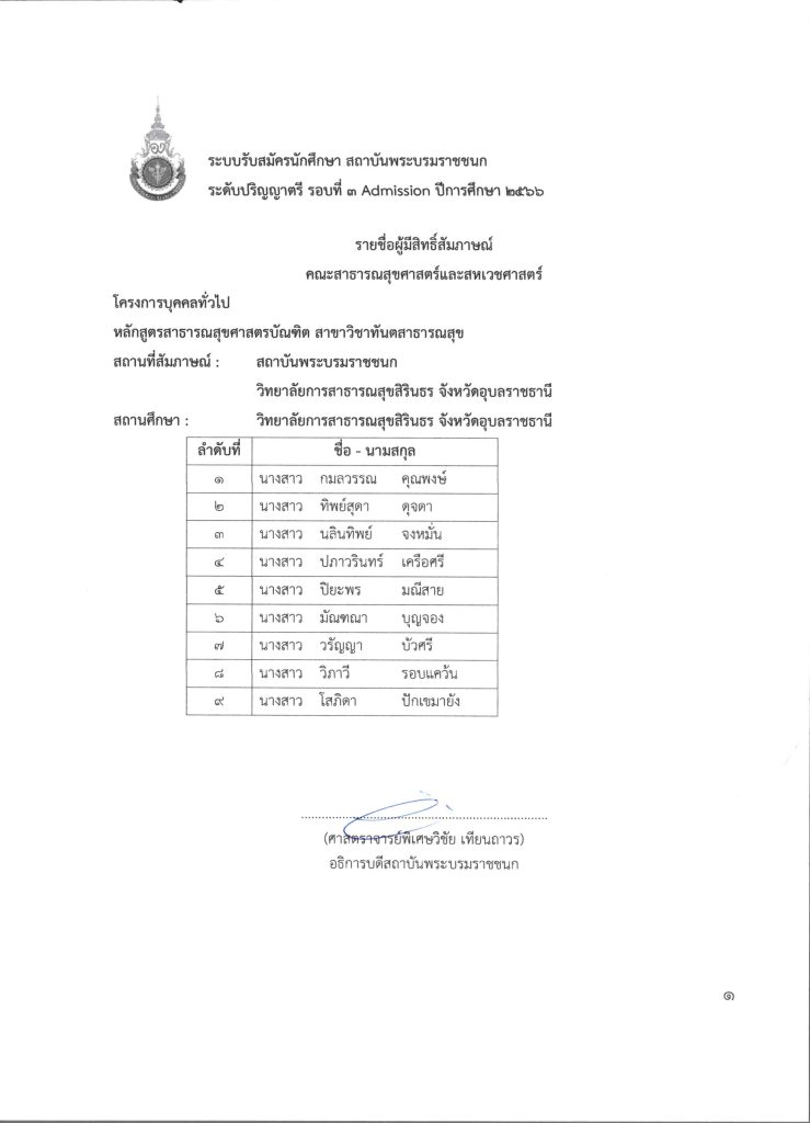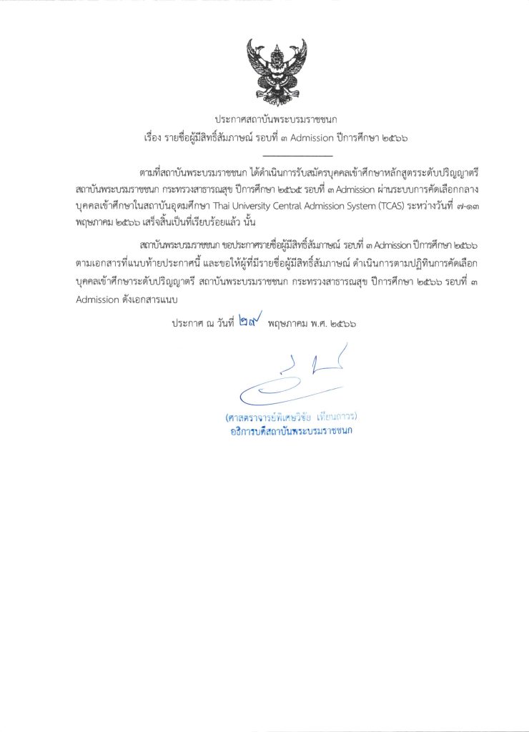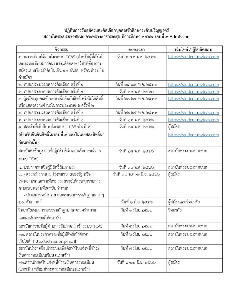 ประกาศสถาบันพระบรมราชชนกขั้นตอนผู้มีสิทธิ์สัมภาษณ์ รอบที่ 3