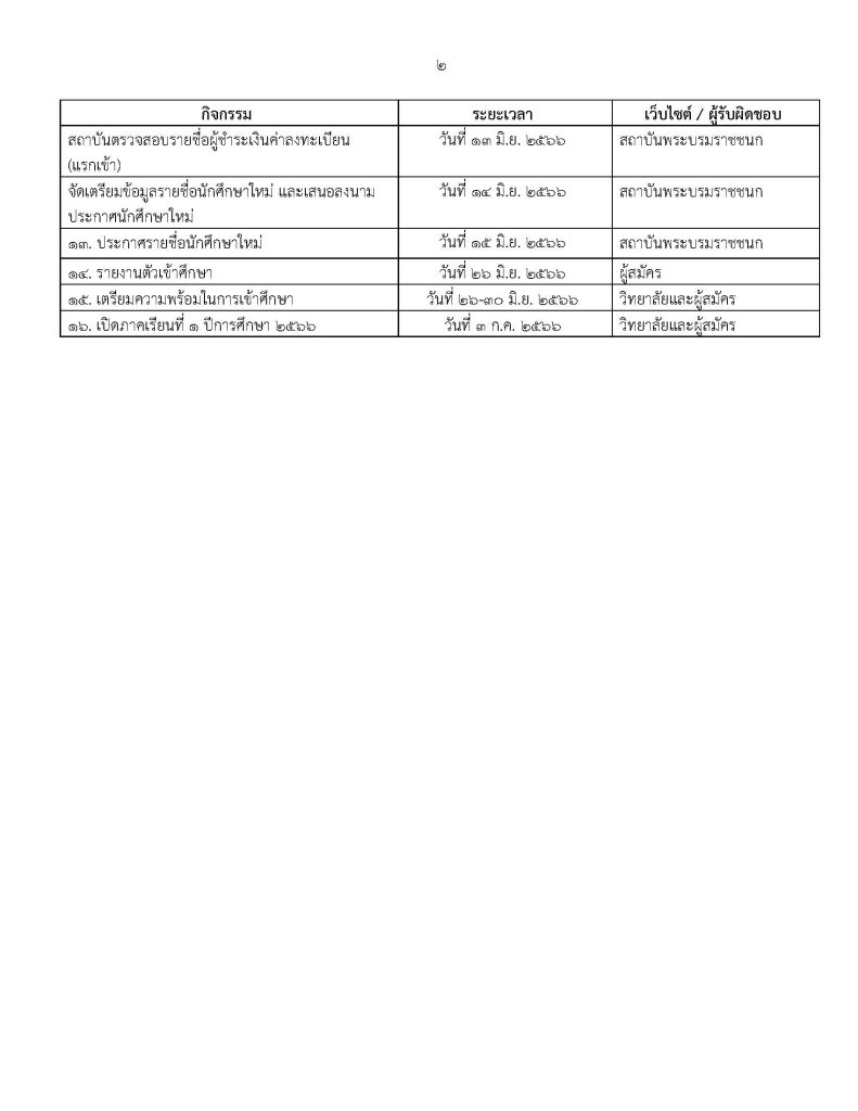 ปฏิทินการรับสมัครและคัดเลือกบุคคลเข้าศึกษาหลักสูตรระดับปริญญาตรี (รอบที่ 3)