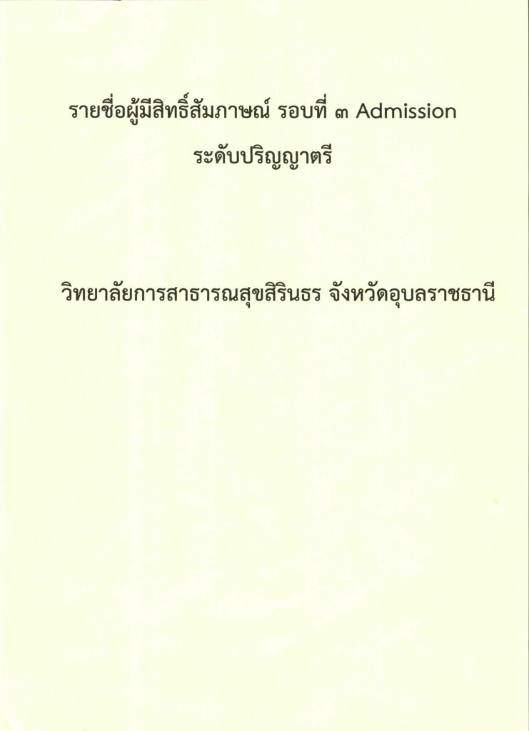 ประกาศรายชื่อผู้มีสิทธิ์สัมภาษณ์ รอบที่ 3 Admission ระดับปริญญาตรี ปีการศึกษา 2566