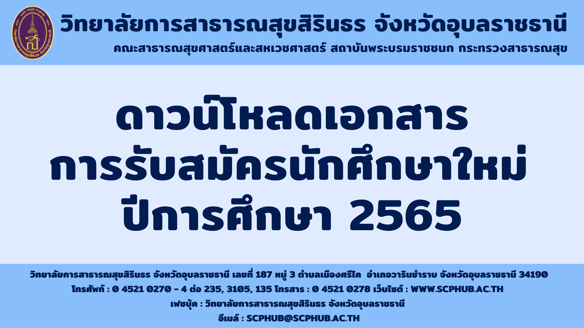 วสส.อุบลฯ รับสมัครนักศึกษาใหม่ ปีการศึกษา 2565 ระดับปริญญาตรี หลักสูตรสาธารณสุขศาสตรบัณฑิต สาขาวิชาสาธารณสุขชุมชน สำหรับผู้จบ ปวส.หรือ ปริญญาตรีทุกสาขา