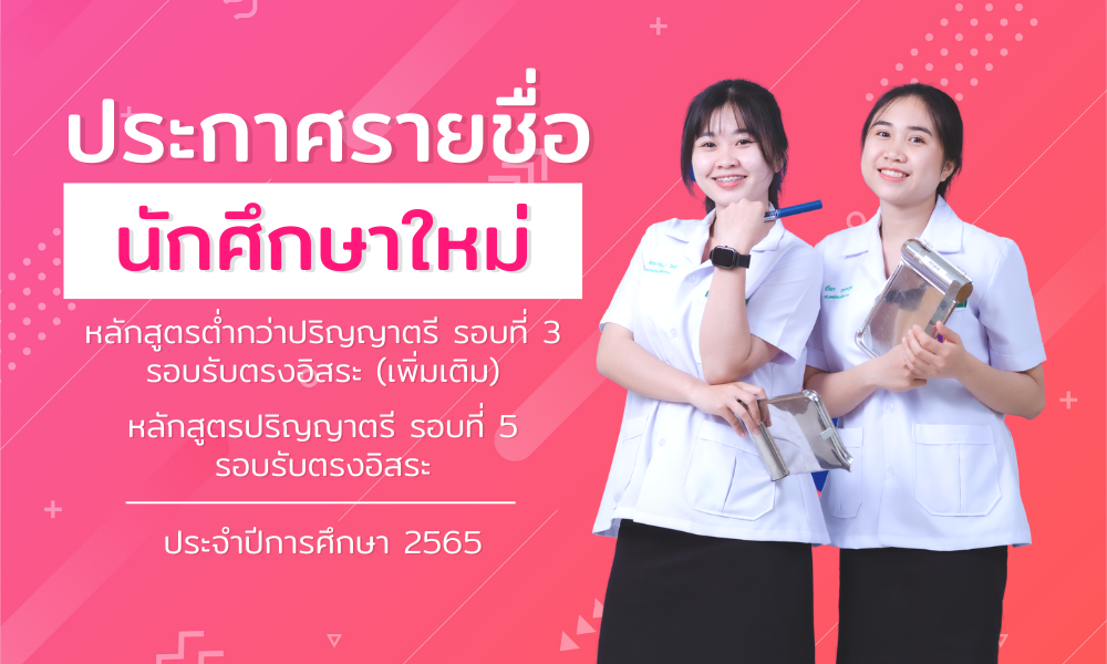 ประกาศรายชื่อนักศึกษาใหม่หลักสูตรระดับปริญญาตรี รอบที่ 2 Quota และหลักสูตรต่ำกว่าปริญญาตรี รอบรับกลาง ประจําปีการศึกษา 2565