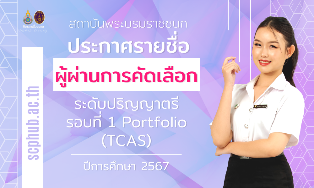 ประกาศรายชื่อผู้ผ่านการคัดเลือก ระดับปริญญาตรี รอบที่ 1 Portfolio (TCAS1) ปีการศึกษา 2567