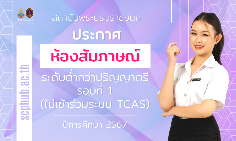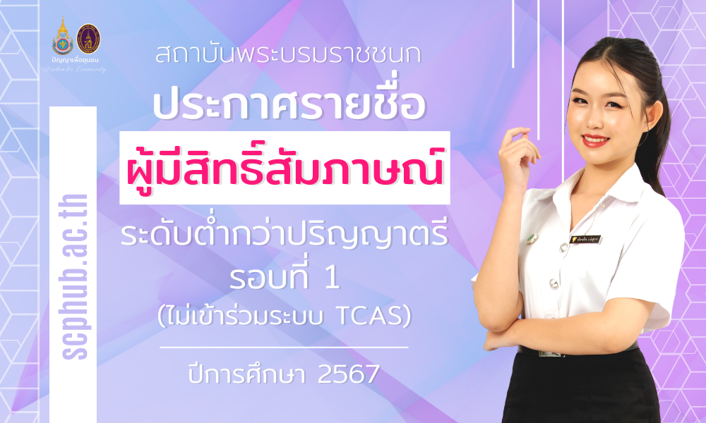 ประกาศรายชื่อผู้มีสิทธิ์สัมภาษณ์ ระดับต่ำกว่าปริญญาตรี รอบที่ 1 Portfolio (ไม่เข้าร่วมระบบ TCAS) ปีการศึกษา 2567