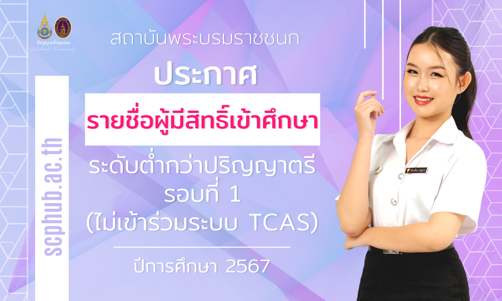 ประกาศรายชื่อผู้มีสิทธิ์เข้าศึกษา ระดับต่ำกว่าปริญญาตรี รอบที่ 1 Portfolio (ไม่เข้าร่วมระบบ TCAS) ปีการศึกษา 2567